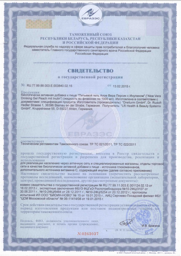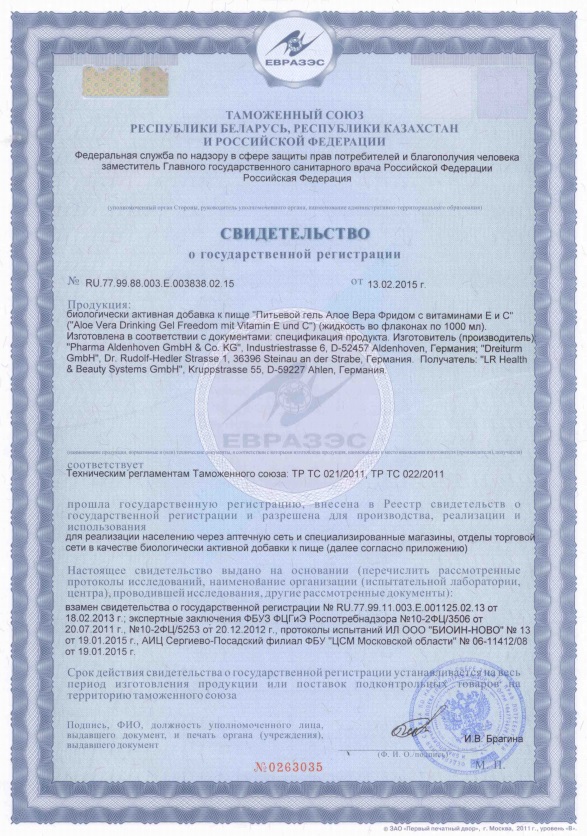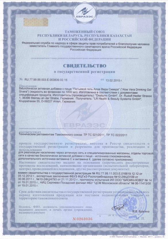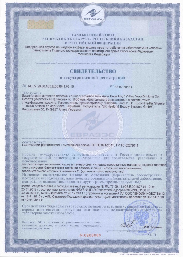 ВСЯ ПРОДУКЦИЯ НА ОСНОВЕ АЛОЭ ВЕРА СЕРТИФИЦИРОВАНА!!!