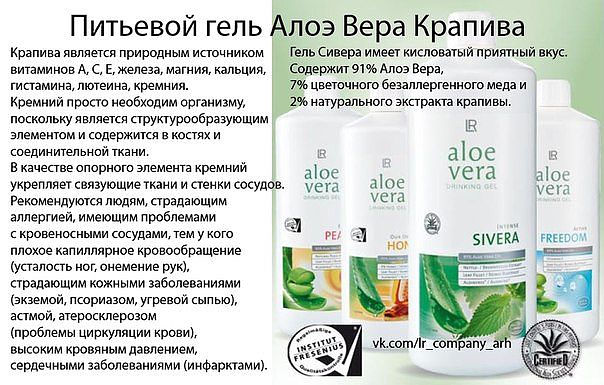Во-вторых, это питьевые гели на основе Алоэ вера. Каждый применяет тот вид геля, который необходим для здоровья... Сейчас я их покажу, а потом немного расскажу, как они нам помогают...