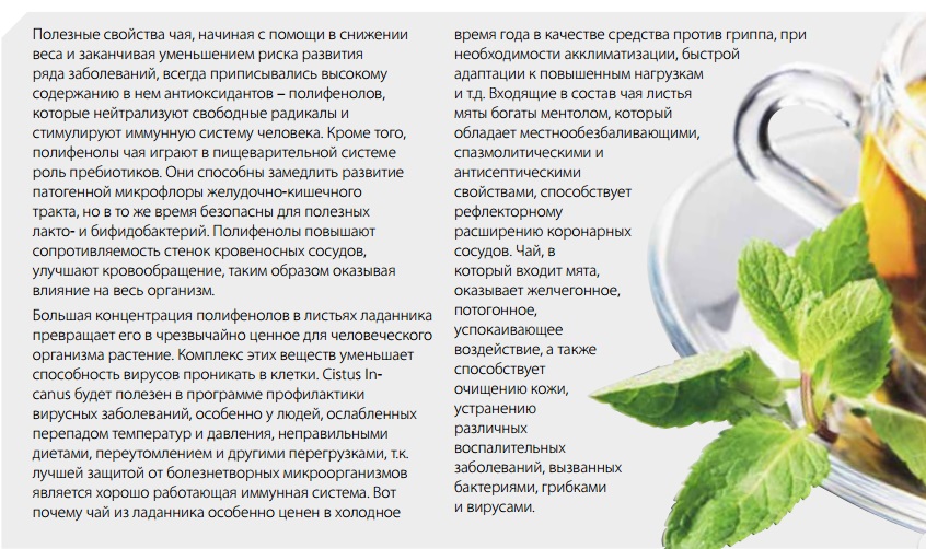 не в красивых цветках, а в его листьях. Листья этого растения содержат полифенолы