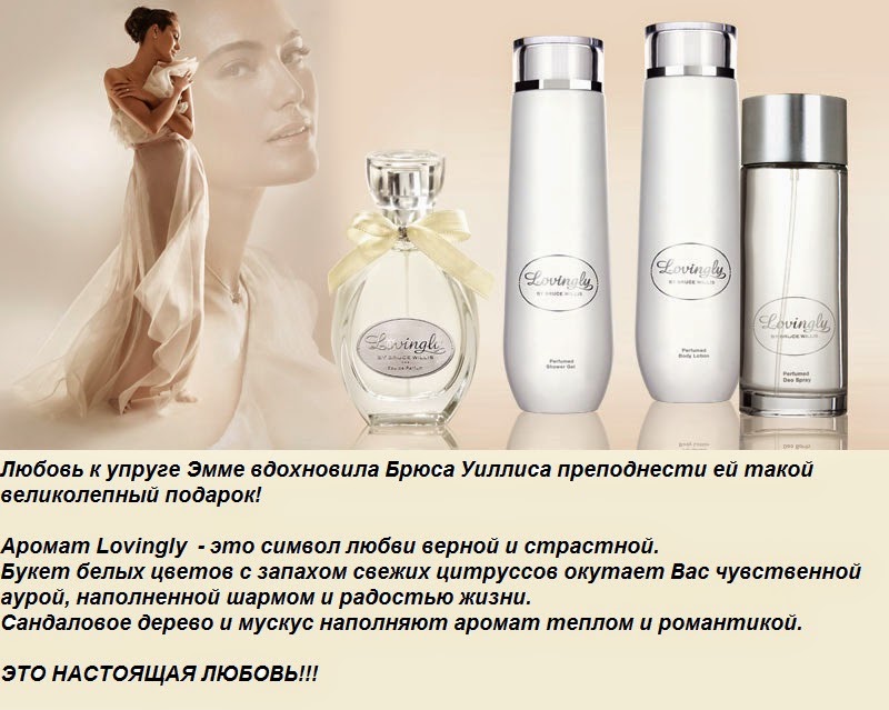 Парфюм, предназначенный для современных и стильных женщин, излучающих особую чувственность, - признание в любви известного актера к жене, Эмме Хэминг-Уиллис. Оба ароматы были номинированы на европейскую награду в области парфюмерии "Duftstars".