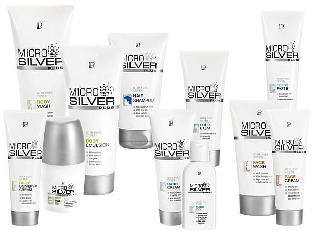 Серебро в косметике подходит для любого типа кожи, защищает от воспалительных процессов и раздражения, предотвращает старение кожи, идеально для молодёжи, так как лечит угревую сыпь. В каталоге от компании LR мы имеем огромнейший выбор высококачественных косметических средств наносеребра шикарной линии MicroSilver. Можно сказать здесь есть всё от головы до пяток. Очень большой выбор кремов по уходу за подростковой, сухой и чувствительной, жирной и комбинированной кожей лица, рук, ног, расслабляющая соль для ног, зубная паста, шампунь против перхоти, бальзамы, спрей, шариковый дезодорант без алюминия.